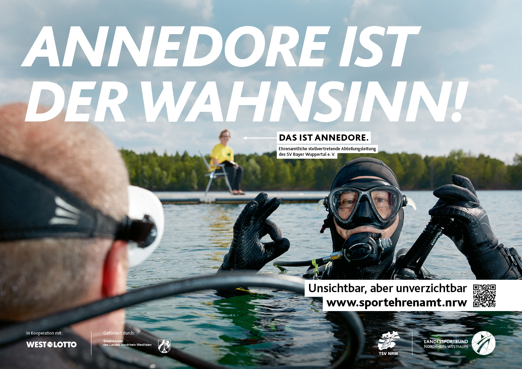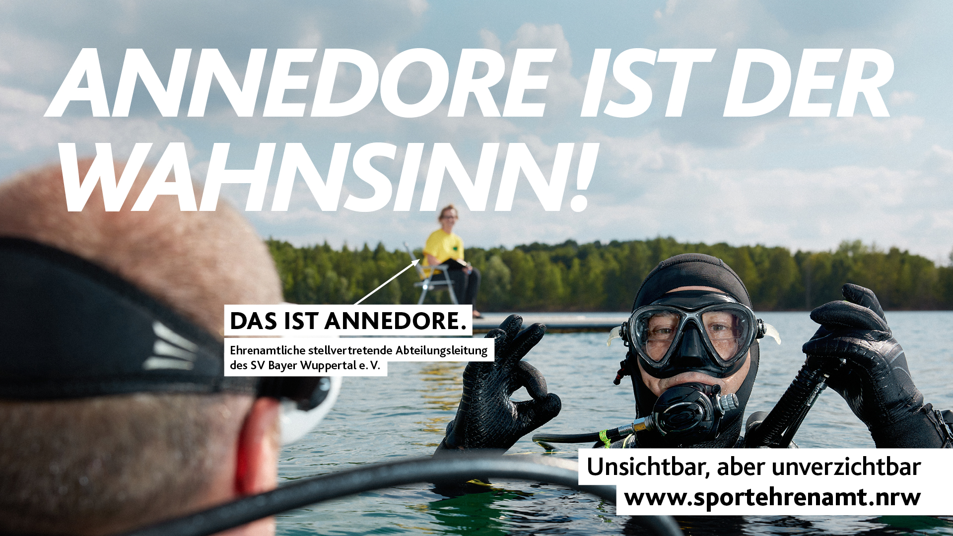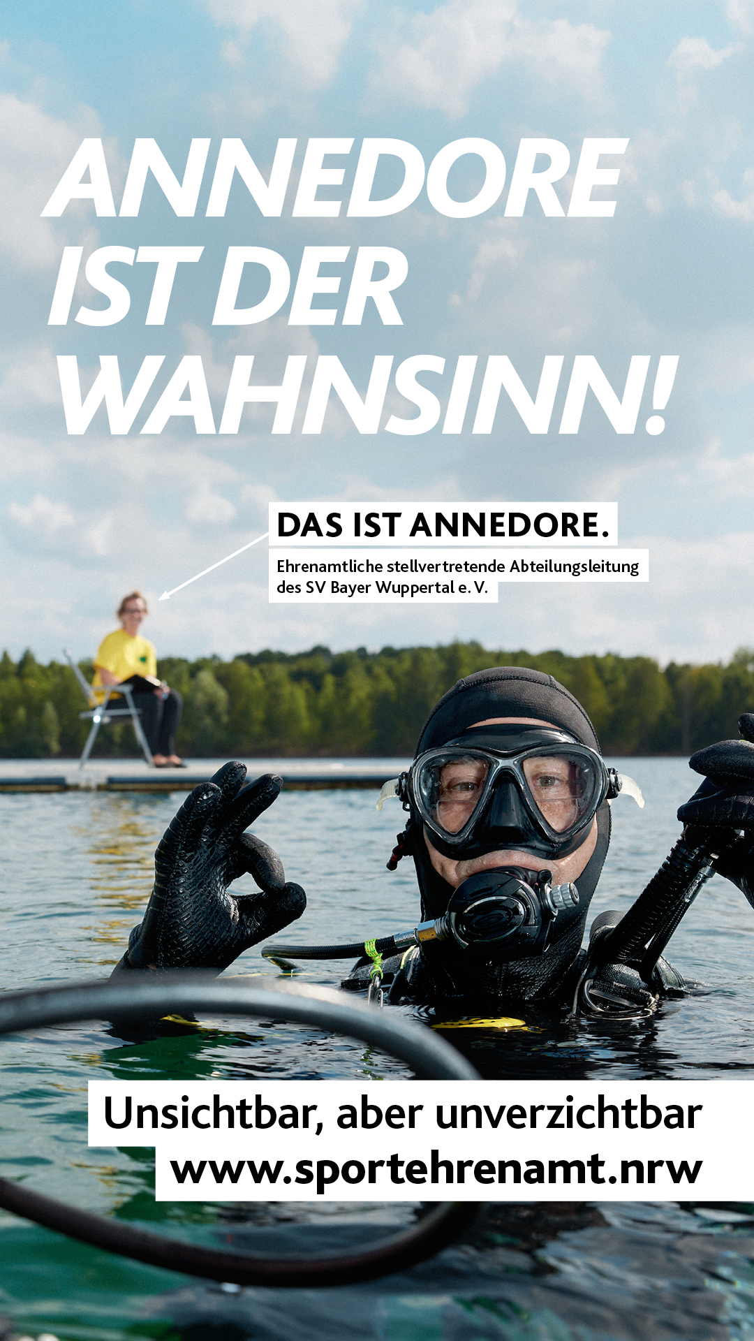 Annedore lebt fürs Tauchen – und für ihren Verein, den SV Bayer Wuppertal. Als stellvertretende Abteilungsleiterin packt sie überall mit an: Sie leitet eine Flossenschwimmgruppe, begleitet Vorstandssitzungen, füllt Pressluftflaschen und organisiert Vereinsfeste. „Es ist einfach toll, wenn man sieht, dass Dinge laufen und alles funktioniert“, sagt sie.